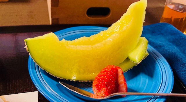 写真は料亭から見る長良川と金華山。そして今年の初メロン☆