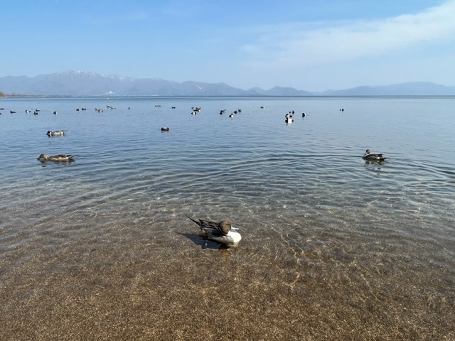 写真は猪苗代湖のカモと鶴ヶ城近くのカフェ内(吉野1,000年欅1枚板)です(^^)/エネルギーチャージ完了!!