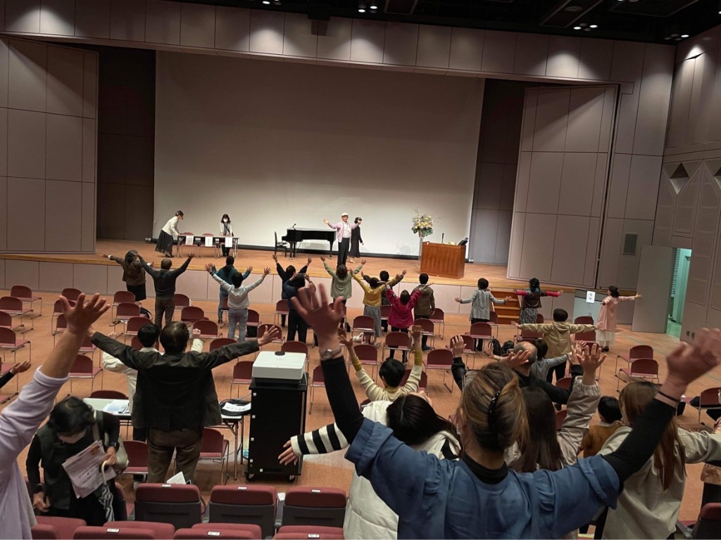 最後は息子と2人。私はライアー練習、息子はパソコン準備をしていると