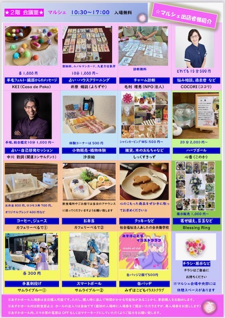 ★2階の会議室★ マルシェ ※入場料は無料になります。 時間:10:30~17:00 15ブース