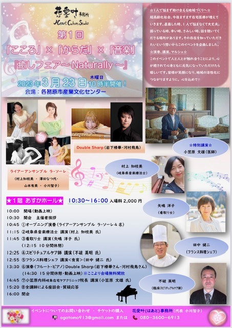 イベントチラシはこちら♡第1回「こころ」×「からだ」×「音楽」『癒しフェア~Naturally~』