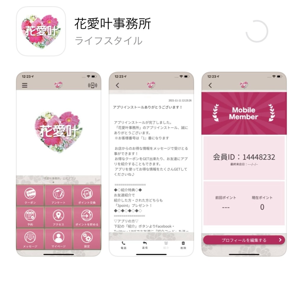 花愛叶事務所の専用アプリができました!App storeを開き、直接「花愛叶事務所」と入力していただくとインストールが可能です。事務所に来てくださる方は、QRコードも用意しています。ぜひ、活用してください。よろしくお願い致します♡