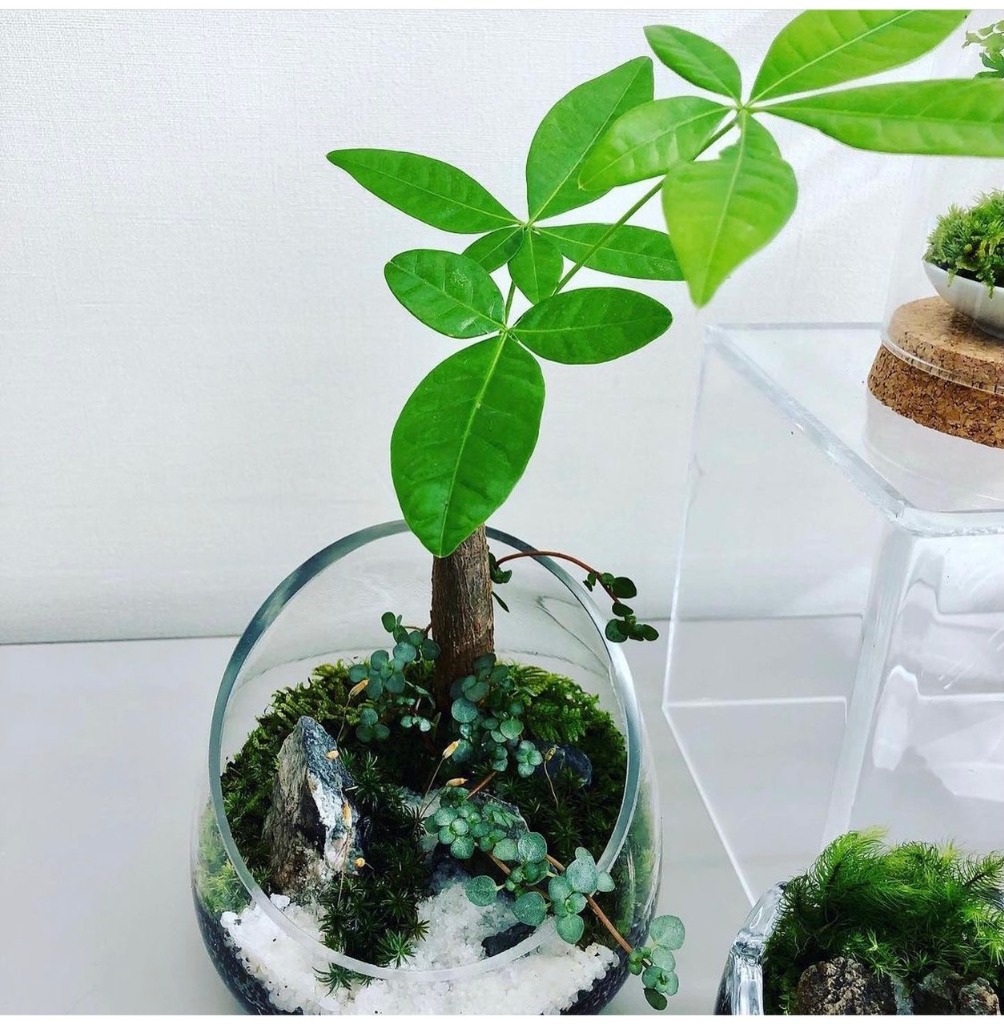 11月2日は 私の苔テラリウム師匠、moss-connect今田裕先生のレッスンを名古屋で受けてきました。7月以来でした!今回も、先生が用意してくださったものから、自分のデザインに合わせて器、石、苔、植物をセレクトし、作成。今回の私のテーマは「緑龍神」。パキラで大木を、ピレアで龍神様を表現しました。
